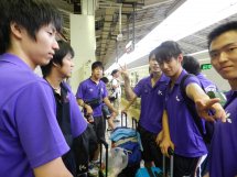 平成23年度秋季リーグ戦前の合宿と地元中学生との交流会の様子。 |